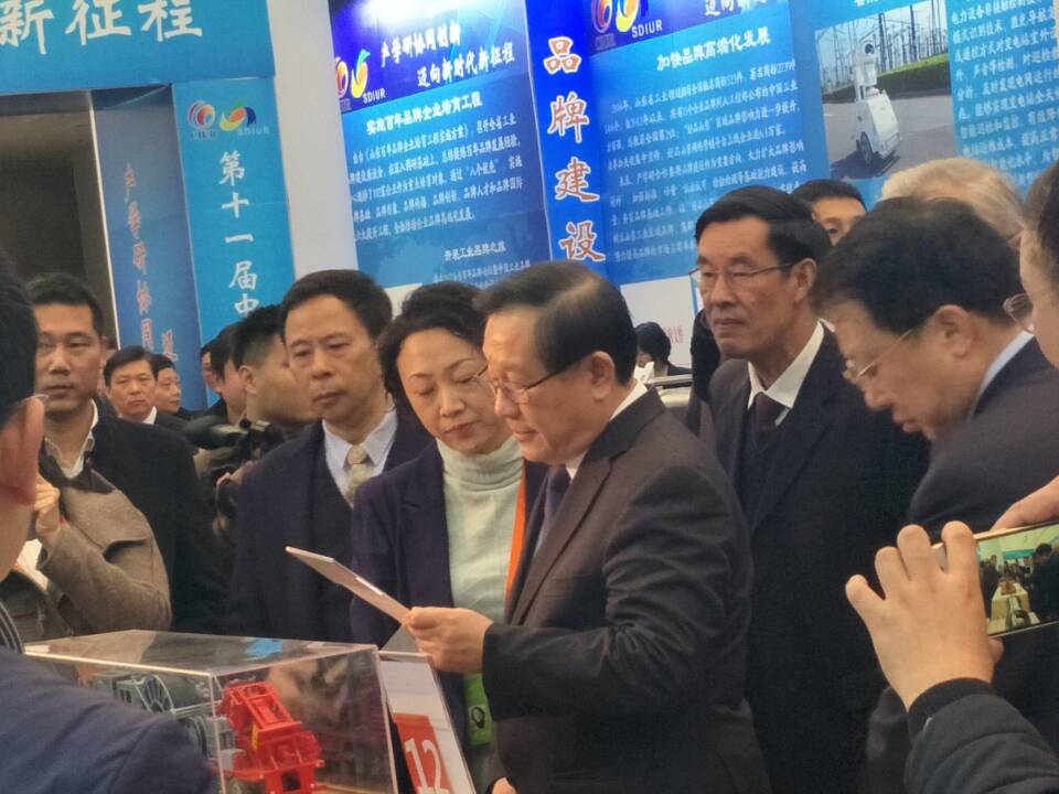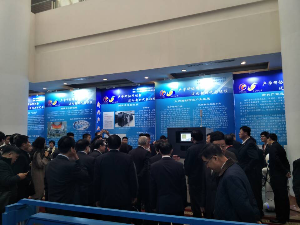 與會代表還參觀了山東省產學研展洽會。山東省委省政府高度重視產學研合作創新,從1991年開始連續25年舉辦產學研展洽會,有計劃、有步驟地組織開展各類產學研活動。在各級黨委政府的有力推動下,我省產學研協同創新不斷向縱深層次推進,合作模式日趨深化,已成為我省企業技術創新的理念和品牌。截至目前,省政府已與24家國內外知名高校、科研院所就產學研合作簽訂了戰略合作協議,建成各類新型研發機構109家,從事技術研發和轉化的人員6000余人;省級以上企業技術中心均與高校科研院所建立了穩定的產學研合作關系,通過產學研合作完成的企業技術項目占比已達95%以上,產學研合作在推動工業新舊動能轉換上發揮了重要作用。展洽會突出新舊動能轉換,以“新技術、新業態、新模式、新產業”促“智慧產業化、產業智慧化、跨界融合化、品牌高端化”實現“傳統產業提質效、新興產業提規模、跨界融合提潛能、品牌高端提價值”為主線,匯聚了威高妙手“s”微創手術機器人、海信計算機輔助手術系統、浪潮天梭M13、中集來福士藍鯨一號海洋鉆井平臺、盛瑞傳動混合動力八擋自動變速器、卡薩帝雙子云裳洗衣機等一大批我省企業通過產學研合作取得的,引領全省工業發展的重大創新項目,展示了近年來山東省產學研合作取得的豐碩成果。展洽會發布了省內外近50家重點高校、科研院所最新科技成果1600余項,省內近400家企業技術難題、人才需求500余項,為企業與知名專家、學者及研發機構搭建了直接交流平臺,達成了一大批重要合作意向。